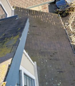 Moss grows in shaded areas that allow moisture to be plentiful. Overgrown trees or build up debris give the perfect environment for this growth. The more shade your roof receives, the more likely the roof will have moss at some point in it’s life. By trimming trees that overhang or shade the roof you are allowing the sun to continue to dry out the surface area and preserve your investment. Annual roof maintenance (that includes walking the full length of the roof) will ensure there are no problem areas that need to be addressed. This is a good time to have the gutters and downspouts cleaned so that debris is removed and water may travel away from the home and towards the ground.